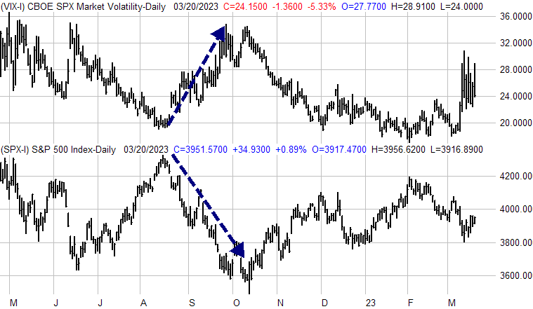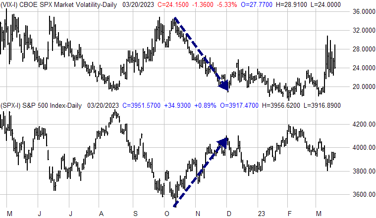 Une hausse du VIX coïncide généralement avec une baisse des cours des actions.